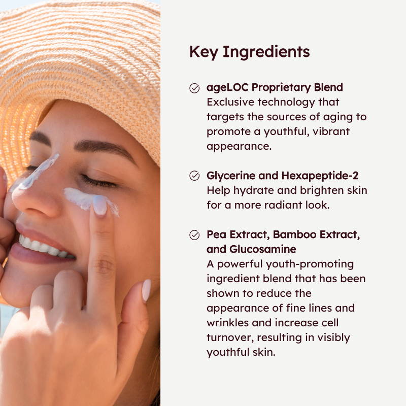 ageLOC® Tru Face® Radiant Day is a lightweight, silky-smooth daily lotion that helps visibly reduce fine lines and wrinkles while delivering deep hydration and a luminous glow.