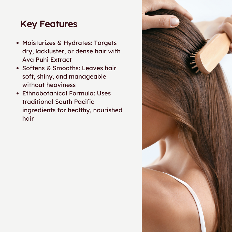 Tackle dry, lackluster, or dense hair with an ethnobotanical formula featuring Ava Puhi Extract traditionally used in the South Pacific. This moisturizing, hydrating, hair-softening conditioner leaves tresses smooth and shiny without weighing them down.
