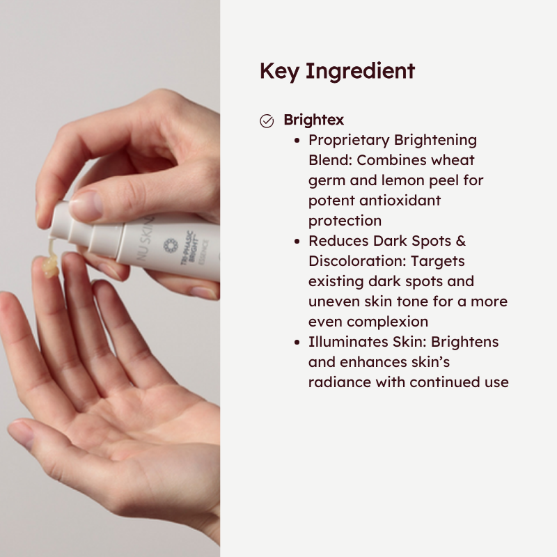 Brightex—a proprietary brightening blend that provides potent antioxidant protection with wheat germ and lemon peel. Combined, these ingredients work in multiple ways to illuminate the complexion by reducing the appearance of existing dark spots, uneven skin tone, and discoloration.